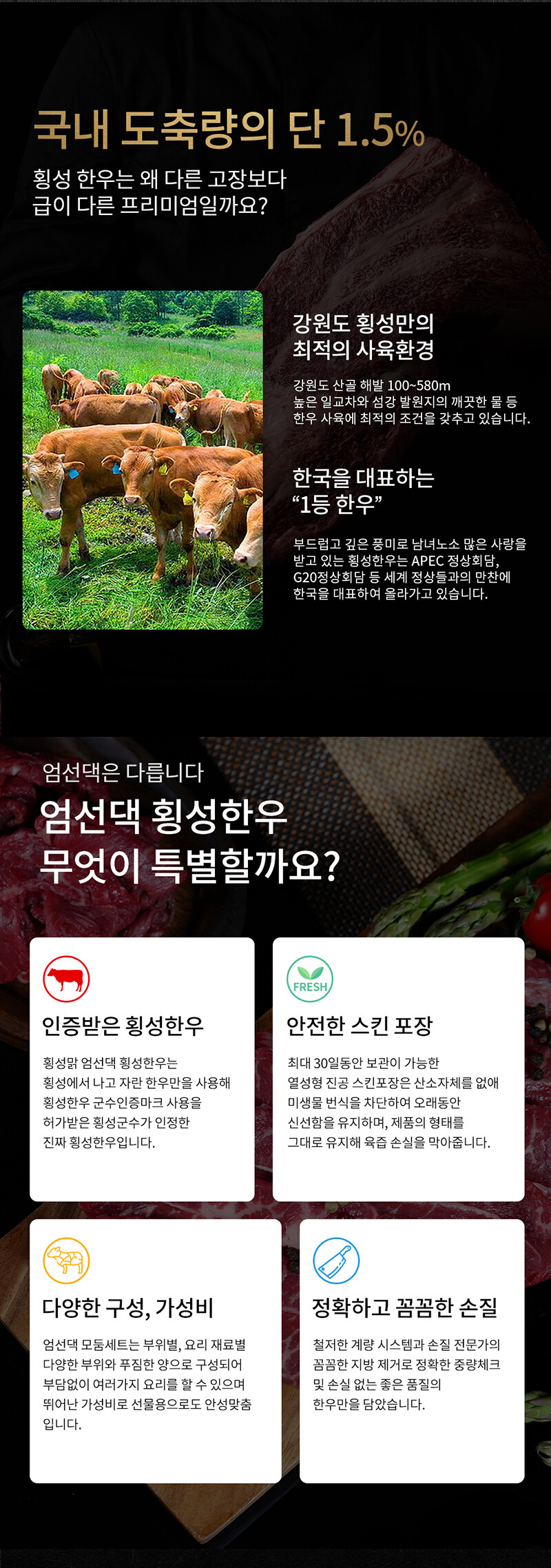축산물 – 축산법에 따른 등급 표시, 축산물이력법에 따른 이력관리대상축산물 유무 횡성한우1등급/이력관리대상축산물