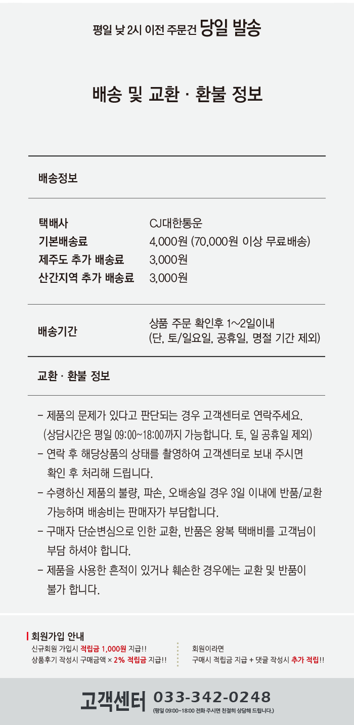 BANK ACCOUNT : 농협 351-0940-3188-63 (예금주 : 농업회사법인(주)횡성맑) CUSTOMER CENTER : 운영시간 오전 09:00 ~ 오후 06:00 / 토,일 공휴일 휴무