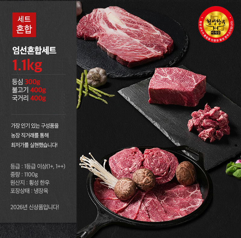 • [명절특가] 1등급 이상 엄선혼합세트 1.1kg, (1등급, 1+, 1++) 상품번호 : 100108
