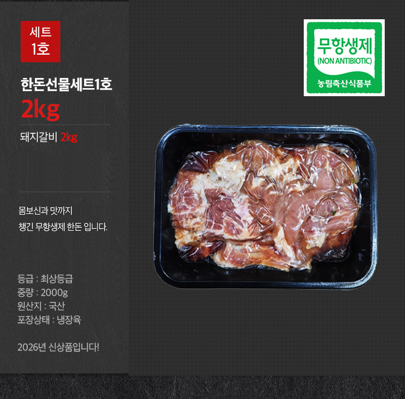 품목 또는 명칭 한돈 선물세트 1호 2kg, 무항생제 돼지갈비