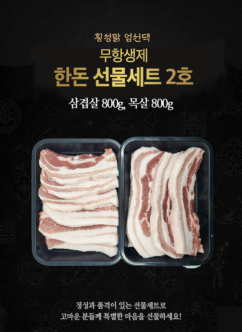 • [명절 특가] 한돈 선물세트 2호 1.6kg, 삼겹살 & 목살 상품번호 : 100116